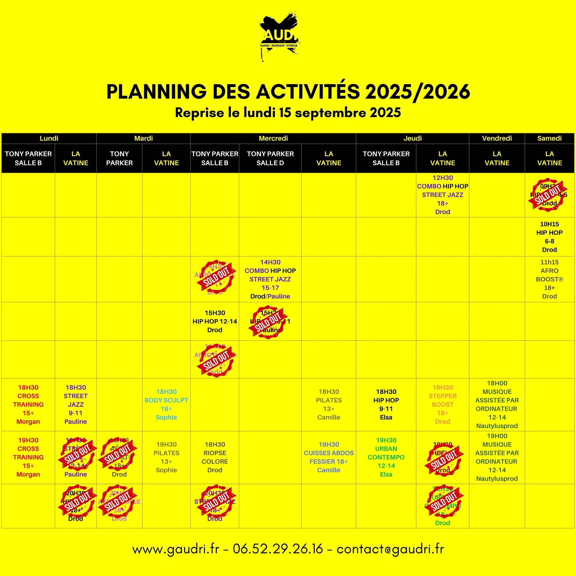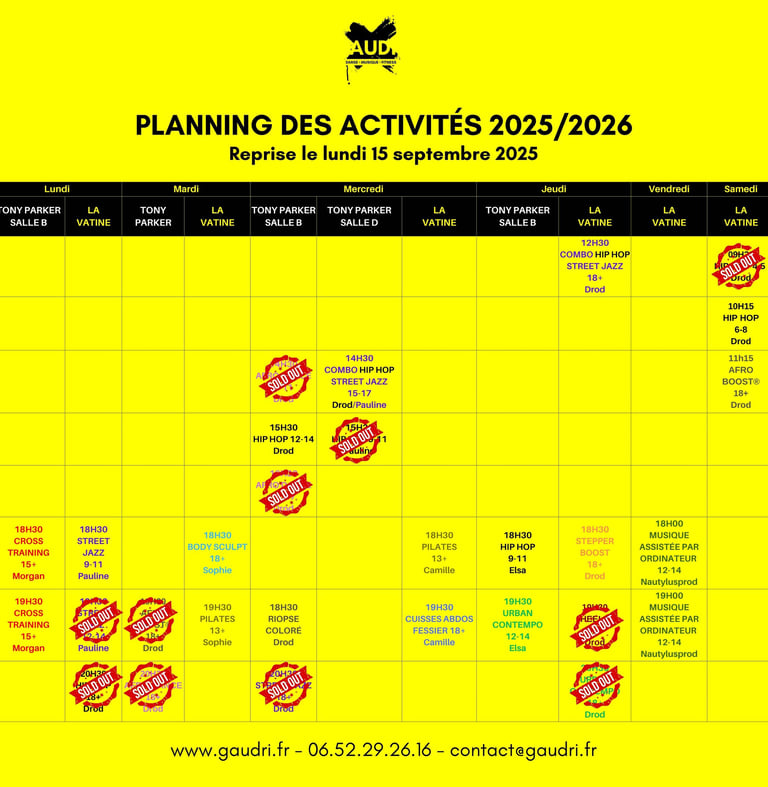 Retrouvez nos plannings pour la saison 2025/2026.